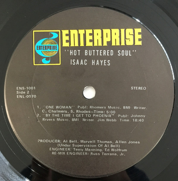 Very similar to [r2303600 and [r14080549, only this one was cut at Mastercraft. The other 2 mentioned releases are combinations of Auditronics and Mastercraft. - Terre Haute pressing - Lacquer cut at Mastercraft - Blue Enterprise logo on labels - "STEREO" on labels - Printed on back cover: "Re-mix [... Tera-Shirma Sound Studio, Detroit Michigan [... Special thanks to Terry Manning, Ardent Recording Studio, Memphis, Tennessee; Ed Wolfrum, United Sounds Studio, Detroit, Michigan. [... Enterprise Records, a division of Stax Records, a division of Paramount Pictures Corporation." A1 Publ: Jac Music, Blue Seas Music, BMI A2 Publ: Birdees Music, BMI (Back cover incorrectly lists A2 rights society as ASCAP) B1 Publ: Rhomers Music, BMI B2 Publ: Johnny Rivers Music, BMI