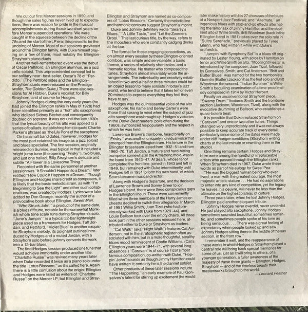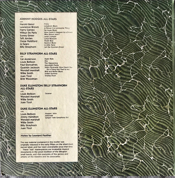 Recorded between June 1947 and June 1951 Sides A and B: Johnny Hodges All-Stars Side C1,3,4,5,6, Side D3.4,5,6: Billy Strayhorn All-Stars Side C2: Duke Ellington/Billy Strayhorn All-Stars Side C3, Side D1,2: Duke Ellington All-Stars