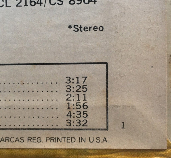 Pitman pressing with "P" stamped on runouts. Columbia "2-Eye" label, "360 Sound Stereo" in black. "Nonbreakable" printed under catalogue number on labels There is a little "1" printed in the lower right corner of the rear cover