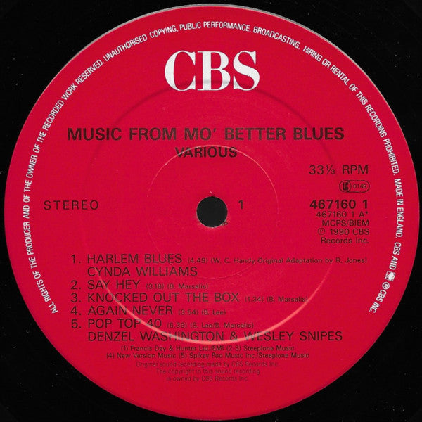 Label variation of [r1699770 with the Matrix / Runouts and Label Code on the right in the 3 o'clock position and STEREO on the left in the 9 o'clock position. There is also a V stamped into the deadwax on both sides. This version also has the number 58 inside a circle on the bottom of the back cover next to the label code, along with CB 291 inside a box next to the 58. Music from the motion picture by Spike Lee. Recorded at RCA Studios and Sound On Sounds, New York, NY. Mixed at RCA Studios, Power Station and Sound On Sounds, New York, NY.