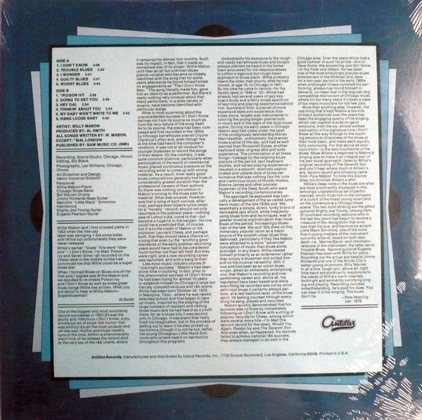 Title on labels and spine: Willy Mabon Sings "I Don't Know" & Other Chicago Blues Hits