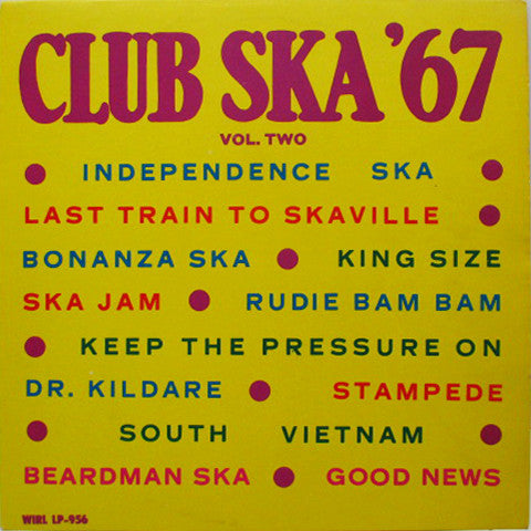 Yellow rough-textured W.I.R.L. labels state "Club Ska '67-Volume II" and incorrectly credit track A2 as "Doctor Ring A Ding - Roland Alphonso" instead of "Last Train To Skaville" as credited correctly on rear cover.