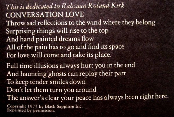 Released in a die-cut fold-out sleeve. "PR" in label matrix denotes a [l130920 pressing. Album is dedicated to Rahsaan [a218045